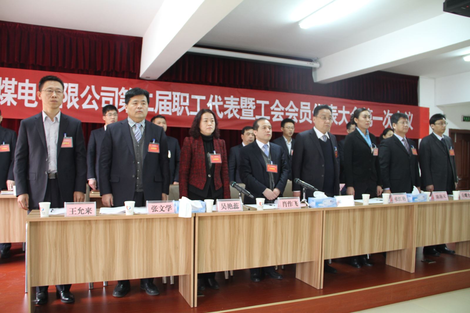 二届一次职工代表暨工会会员代表大会于27日在热电公司三楼会议室召开,金威煤电党委书记、董事长肖作飞主持会议,金威煤电副总经理(主持工作)申玉海作《行政工作报告》,吴艳蕊作《工会工作报告》,金威煤电公司领导班子及职工代表参加会议。