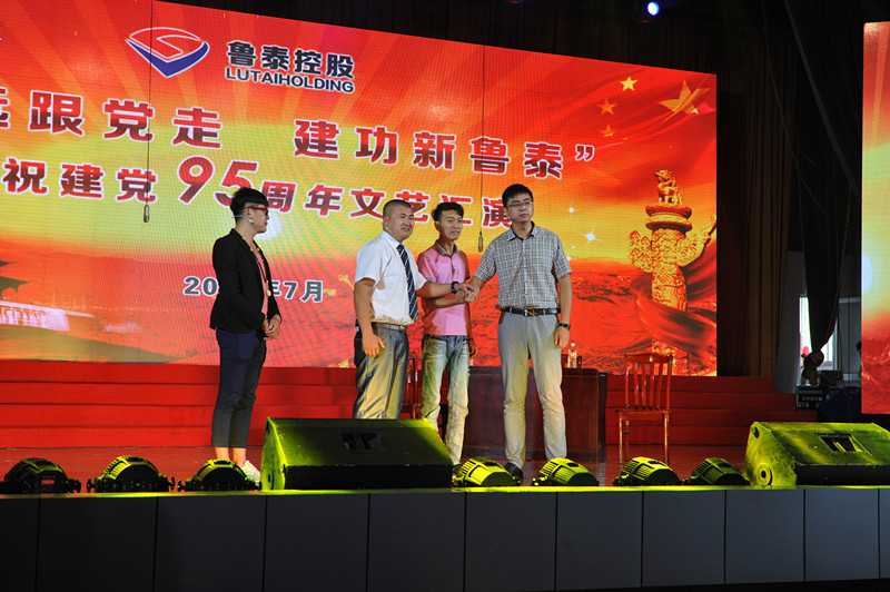 举办"庆七一"专场文艺演出,从照搬照学的传统教育形式中解脱出来,丰富了鲁泰控股集团纪念建党95周年的活动内涵,将党的关怀和问候送到职工身边。今年,鲁泰控股集团开展形式多样、富有成效的"纪念建党95周年"系列活动。除了本场文艺演出外,还将开展到基层党支部讲党课、现场观摩集团公司托管服务转型发展成果、到红色主题教育基地参观学习、做好入党积极分子培养和党员管理、摸排走访困难党员等一系列活动,扎实推进"两学一做"学习教育向纵深发展。