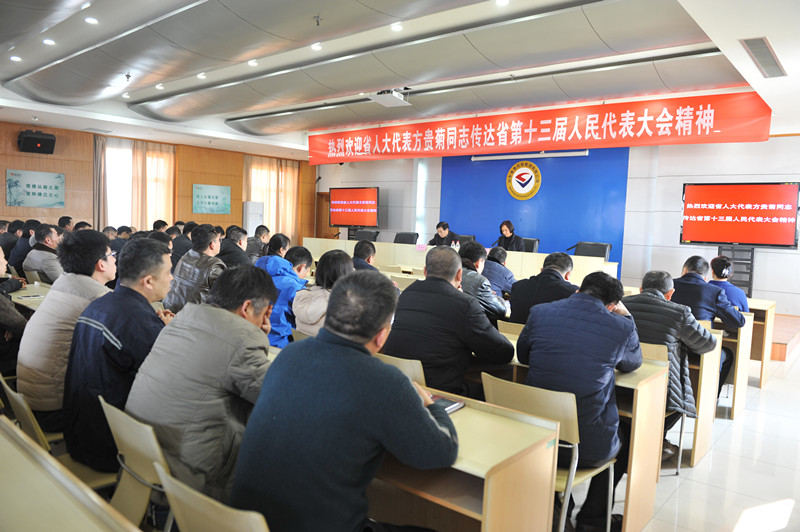 2月7日下午,鹿洼煤矿召开会议,山东省第十三届人大代表,运输工区职工方贵菊传达省第十三届人民代表大会第一次会议精神。会议由矿纪委书记郑景鹏主持,全矿党员干部和部分职工代表参加了会议。