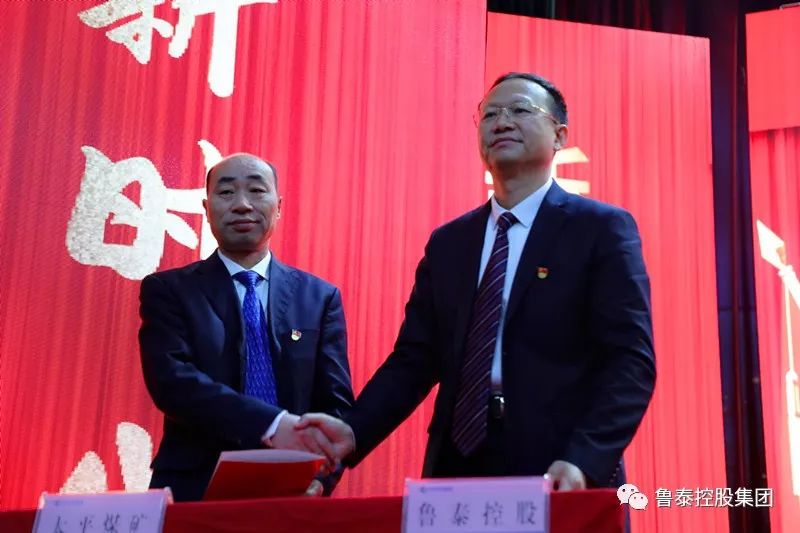 李合军代表集团公司分别与太平煤矿矿长邵国华、鹿洼煤矿矿长贾广海、鲁泰化学党委书记董事长张玉标、金威热电总经理王允来、金威水泥总经理张文学、陕西鲁泰总经理楚旭峰、鲁泰物流执行董事副总经理张国森、宁夏鲁泰总经理刘炳法签订2018年度目标管理责任书。