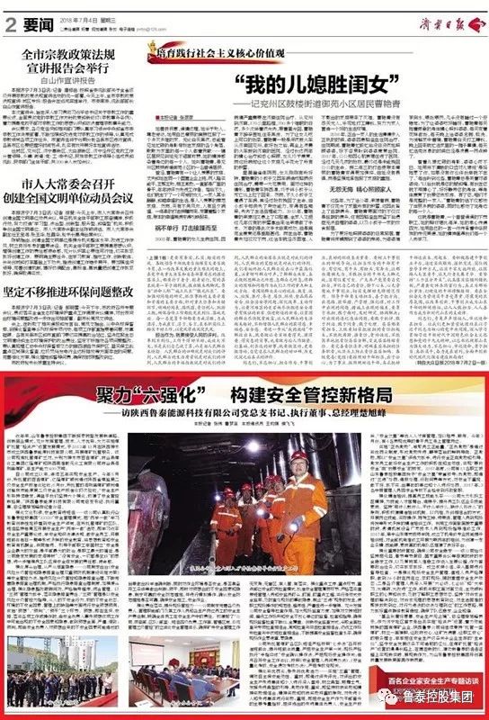 自公司成立以来,连续五年实现安全生产。今年5月份,所托管的百吉煤矿、亿隆煤矿顺利通过陕西省煤监局二级安全生产标准化验收;6月份,所托管的海则庙煤矿顺利通过榆林市能源局二级安全生产标准化初次验收。“安全生产形势持续稳定,得益于我们坚持六个强化,构建了安全管控新格局。”陕西鲁泰能源科技有限公司党总支书记、执行董事、总经理楚旭峰向记者介绍。